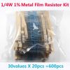 1/4W CARBON FILM FIXED RESISTORS 5% tolerance.